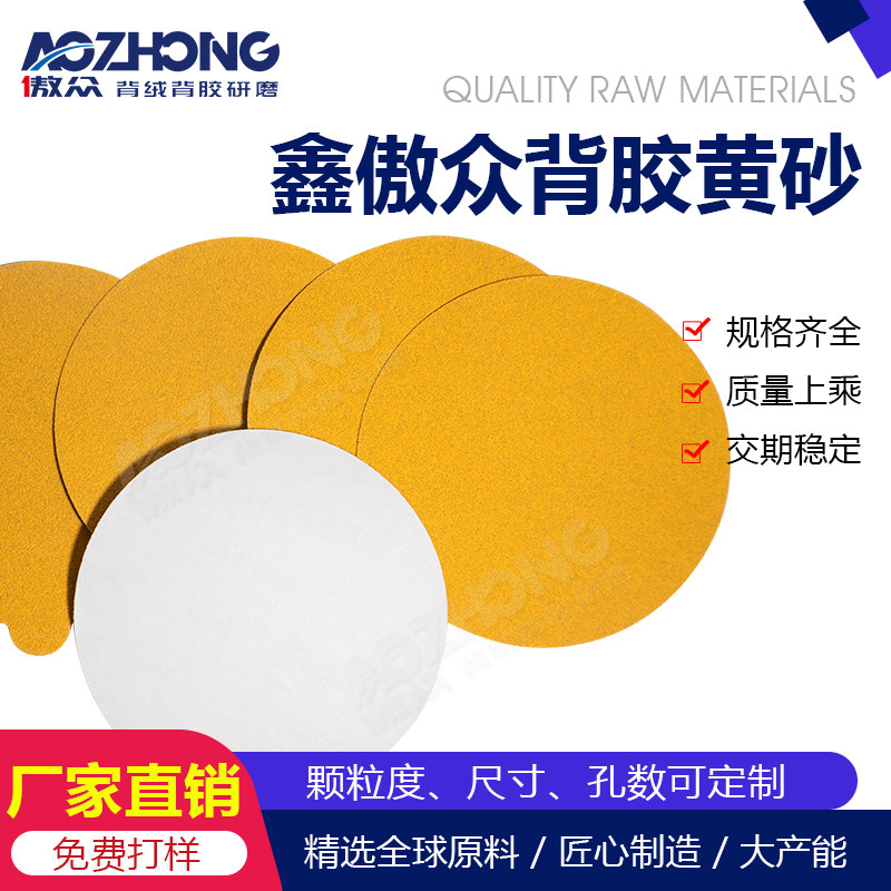 厂家批发背胶砂纸 5寸汽车塑料旧漆清除干磨水磨植绒背胶黄砂纸