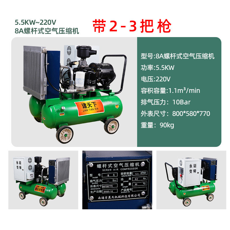 8A 5.5KW变频螺杆式空压机(带2把枪)