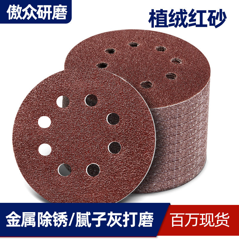 厂家批发砂纸 4寸红砂锋芒棕刚玉金属打磨除锈腻子灰打磨植绒砂纸