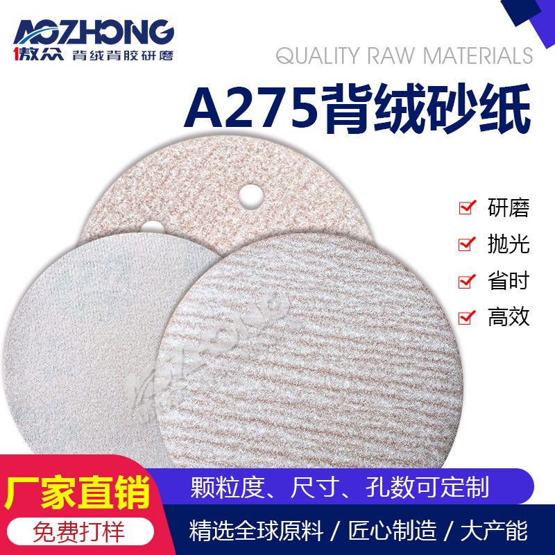 厂家批发背胶砂纸 5寸汽车塑料旧漆清除干磨水磨植绒背胶黄砂纸