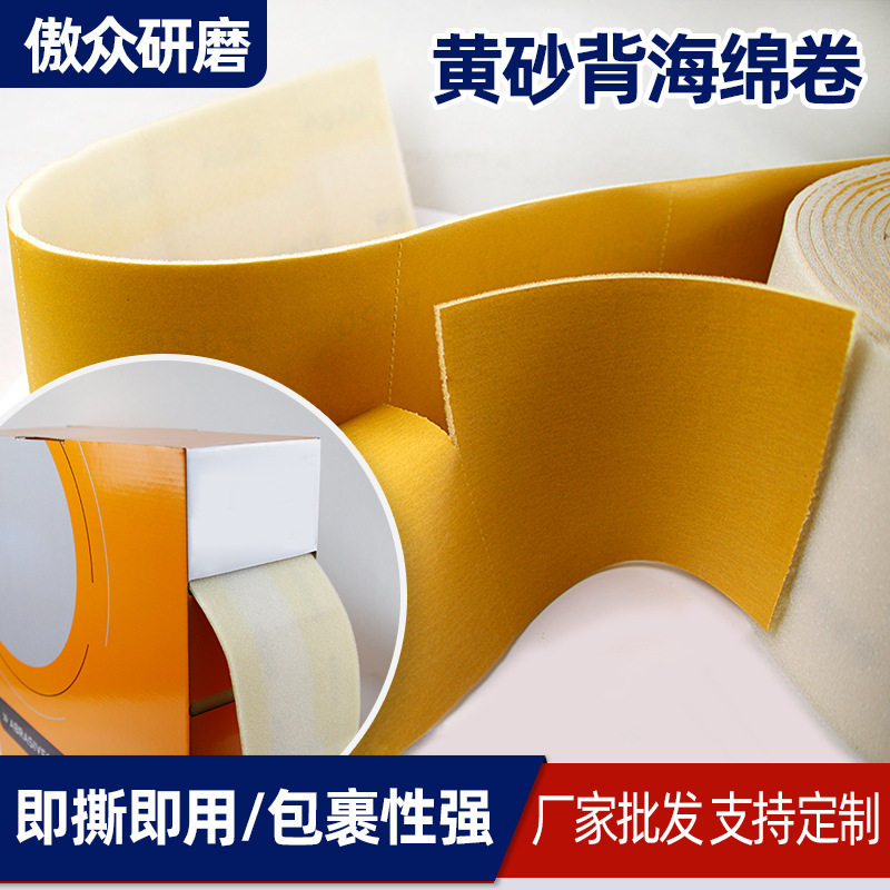 厂商批发海绵砂纸 黄色连片卷曲面金属门把手打磨背绒海绵砂纸