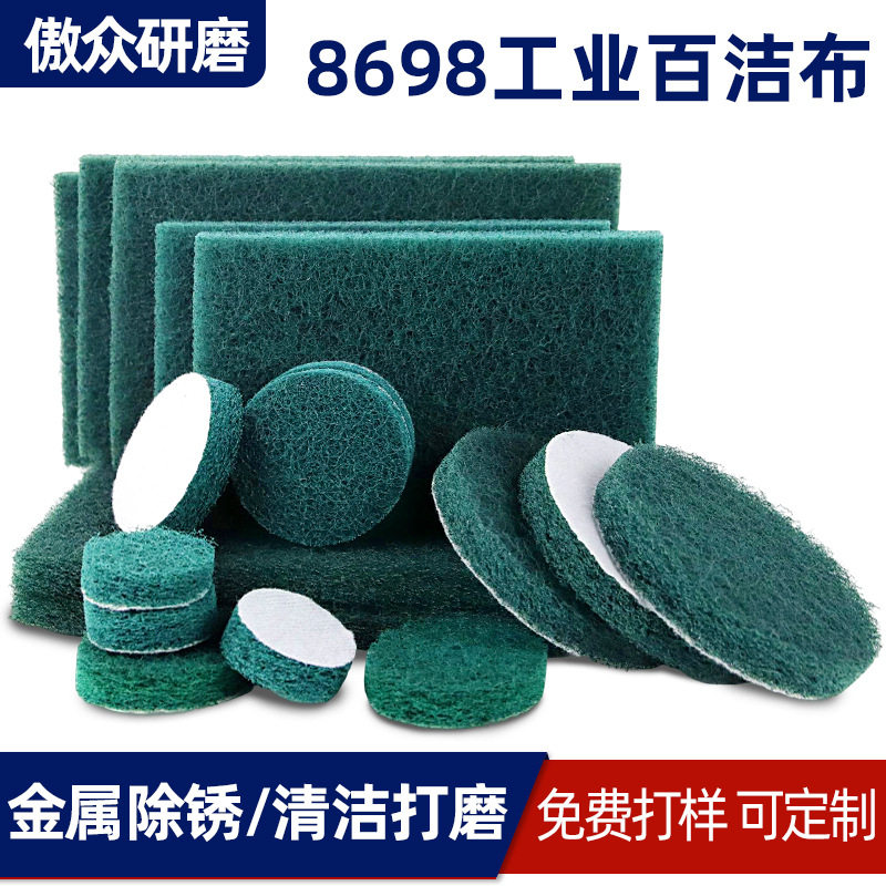 厂家批发工业百洁布 绿色8698金属研磨除锈拉丝植绒卷工业百洁布
