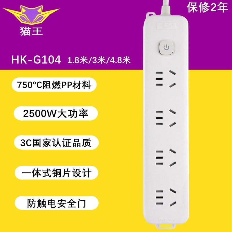 猫王国标插座面板插排家用插座多功能多空位两插三插带线排插 HK-G104