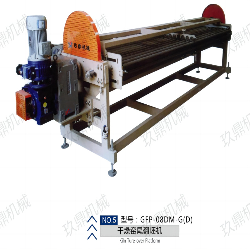 窑尾翻坯机是陶瓷因特殊工艺需要反面进入干燥窑烘干,出窑后需翻转正面进入施釉而增加的设备。